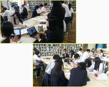 10月9日(水)、美術室にて、各自タブレットを使って、画像を探して画用紙に描いていました。