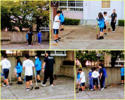 10月10日(木)、今日は、バレー部と生徒会たちがともに清掃活動をしてくれていました。