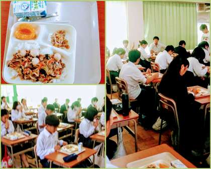 10月23日(水)、今日の配膳は、中華丼、もやしとコーンのゴマ炒め、黄桃(缶)、牛乳です。『桃(もも)』には、実が白色の「白桃(はくとう)」と黄色の「黄桃(おうとう)」という種類があります。給食で使用するのは、黄桃を二つに割り、シロップ漬けにしたものです。黄桃は、実が硬いことが特徴で、缶詰にされることが多いです。
