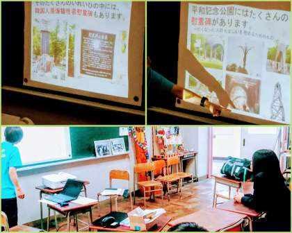 10月28日(月)放課後、平和記念公園内の韓国人原爆犠牲者慰霊碑についての学習をしました。