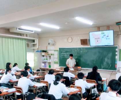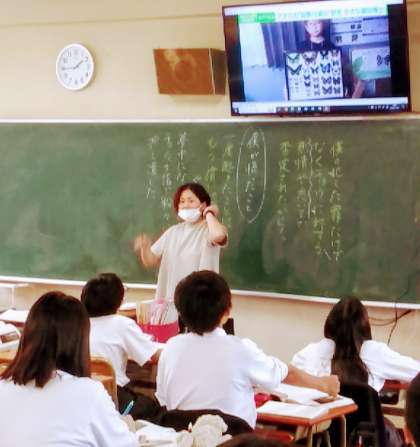 11月5日(火)、1組は、国語の授業です。2組は、社会の授業の様子です。2クラスとも黒板上部の画面を見ながら学習していました。
