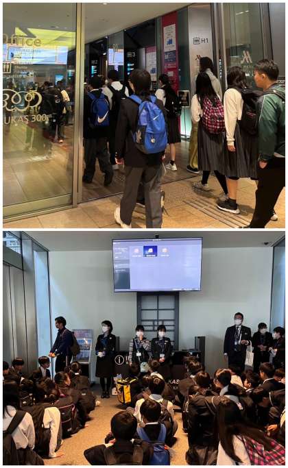 無事にあべのハルカスに到着しました。 ここから班ごとに行動します。 あべのハルカスができるまでの 歴史を学んでいます。