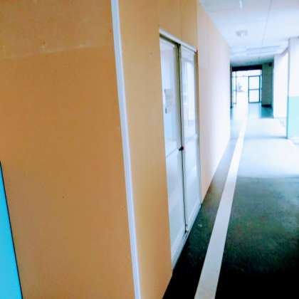 矢田中学校長寿命化改修工事に伴い、1階玄関にありました保健室は、2階多目的室の一部に一時的に移転しています。