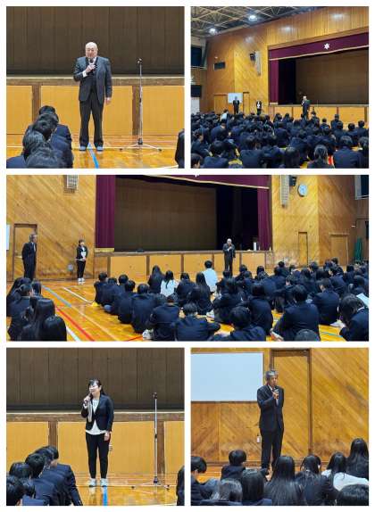 まず、校長先生からのお話がありました。1年生、2年生、3年生、それぞれの進学進級に向けて3学期は目標を決め頑張ってください。さらに