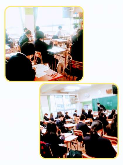 1月9日(木)、1・2年生は、チャレンジテストが行われ、3年生は、第5回実力テストが行われました。どの学年も体調不良が多く欠席が目立ちました。