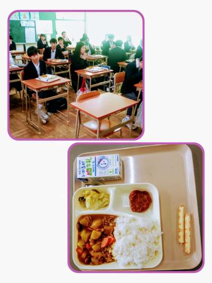 1月14日(火)、今日の配膳は、豚肉と金時豆のカレーライス、焼きミニハンバーグ、白菜のピクルス、棒チーズ、牛乳です。『大阪市の学校給食の歴史』昭和25(1950)年、全ての小学校で給食が始まりました。昭和56(1981)年、月1回の米飯給食が始まりました。平成30(2018)年、牛乳がビンから紙パックに変わりました。令和元(2019)年、全ての中学校において、学校で作られた給食が食べられるようになりました。