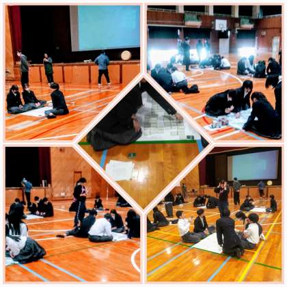 1月16日(木)、5・6限目、閑静な体育館にて、生徒たちは、先生方が詠まれる一首ごとに耳を傾け、間ごとに、歓声が上がったり、ため息が漏れたりと様々な雰囲気が楽しめました。