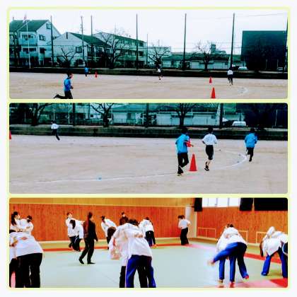 1月22日(水)、男子は、運動場で、持久走での計測をやっていました。女子は、格技室で、体操服に柔道着の上着を着て柔道の授業をやっていました。