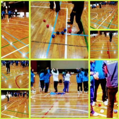 1月23日(木)5・6限目、体育館にて、パラスポーツ『ボッチャ』を体験しました。ジャックボール(目標球)と呼ばれる白いボールに、赤・青のそれぞれ6球のボールを投げたり、転がしたり、他のボールに当てたりして、いかに近づけるかを競うスポーツです。どのチームも大いに盛り上がり一喜一憂していました。