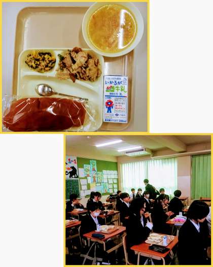 2月5日(水)、今日の配膳は、黒糖パン、豚肉のオイスターソース焼き、ツナとチンゲンサイの炒め物、中華スープ、牛乳です。『良い姿勢で食べよう!』良い姿勢で食べると、食べ物の消化や吸収をよくします。また、見た目がよくなり、みんなが気持ちよく食事をすることができます。「姿勢をよくするためのポイント」には、椅子に深く座る。背もたれによりかからない。机と体は、拳一つ分あける。両足を床につける。