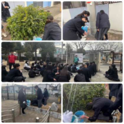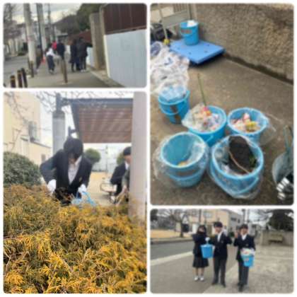 12月には地域の方と行いましたが、今回は環境衛生委員12名を中心に、有志の生徒、ダンス部、サッカー部、登山部で活動しました。