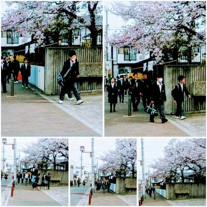 4月8日(火)、朝9時登校です。8時40分頃には、たくさんの生徒たちが正門前に集まりつつありました。写真は、8時50分過ぎの登校の様子です。