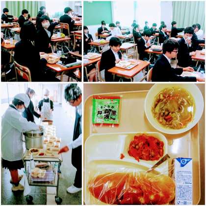 4月11日(金)、今日の配膳は、おさつパン、じゃがいものミートグラタン、ソフト黒豆、レタスのスープ、牛乳です。エネルギー643kcal。