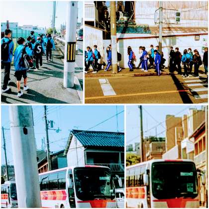 4月14日(月)、晴天下、バス6台で、関西万博へ向けてほぼ予定通り出発しました。