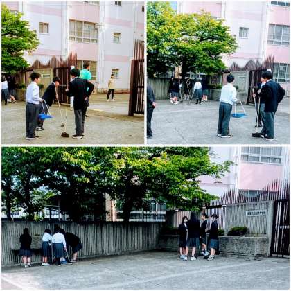5月1日(木)、部活動生徒たちや生徒会役員たちが正門の清掃をやってくれました。