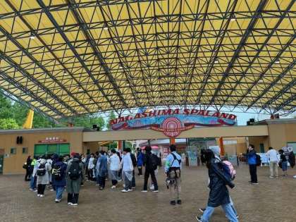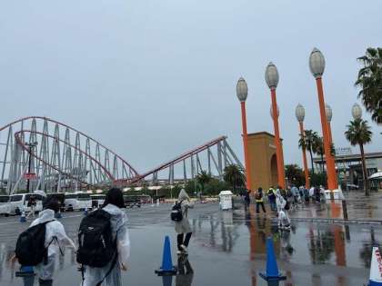 長島スパーランドに到着しました。雨も小降りとなり、遊ぶ気満々です。
