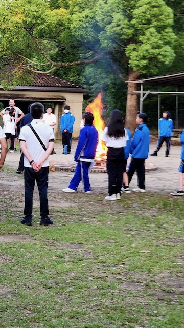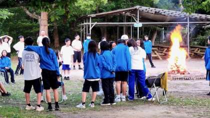 夕食をいただき、これからキャンプファイアーです。みんなで協力して盛り上げます。