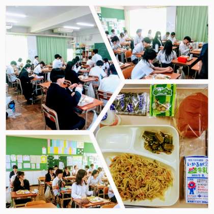 6月18日(水)、今日の配膳は、和風焼きそば、きざみのり(袋)、オクラのかつお梅風味、ミニコッペパン、抹茶大豆、発酵乳、牛乳です。『5・6群の食品の働き』食品は、含まれる主な栄養素によって、6つの食品群に分類することができます。5・6群の食品は、主にエネルギーになる働きがあります。5群(主に炭水化物を多く含む食品群)体内でブドウ糖に分解され、エネルギー源として使われます。米、パン、芋、砂糖、麺などです。6群(主に脂質を多く含む食品群)少量で多くのエネルギー源になり、体温を維持するなどの働きをしています。油(サラダ油、ゴマ油など)、バター、マヨネーズ、ゴマなどです。