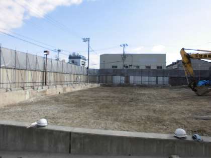 解体工事がひと段落し、現在このような更地?になってます。これからも先は長いですが、プール新築に向け工事は続きます。