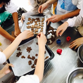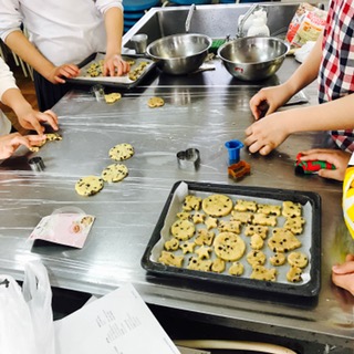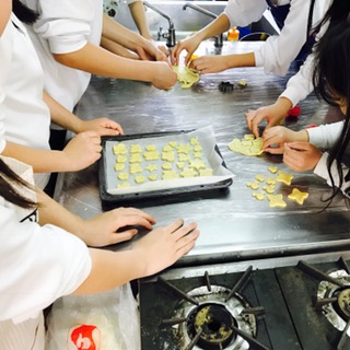 普段は、図書室で活動していますが、本日は調理室にて活動です。新入部員も交え、親睦を深めるべく、クッキー作りをしました。