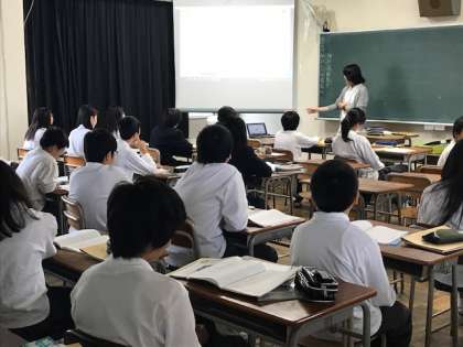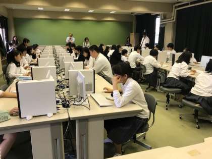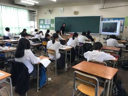 授業参観の様子です。パソコンや電子黒板、プロジェクターなどを利用して授業が行われたいる様子です。生徒たちも真剣に取り組んでいました。
