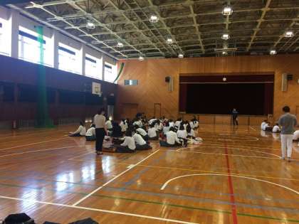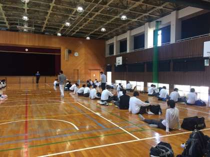 3年生は、明朝7時15分には体育館に集合完了となっています。いつもの学校の時間よりも1時間程度早くなります。