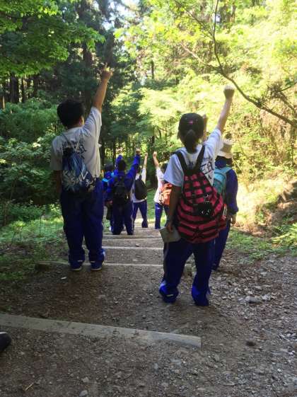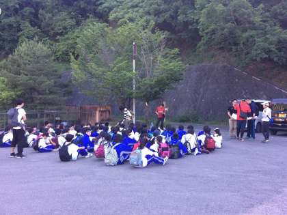 午後から、施設周辺の山道を使ったオリエンテーリングに臨みました。各クラス6つのグループに分かれて、いくつかのポイントを回りながら、展望台を目指します。どのグループも時間内にゴールすることができました。
