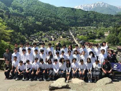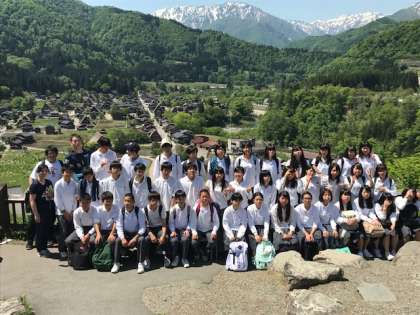 離村式を終え、再び、1つのまとまった修学旅行の一行は、世界文化遺産でもある「白川郷」へ向かいました。