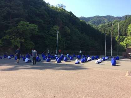ラジオ体操やストレッチをして、今日の活動に備えました。