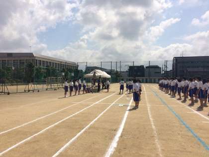 昨晩の雨でグランド状態があまりよくありませんでしたが、水抜きなどを行って、予定通りに体育大会の予行を行うことができました。
