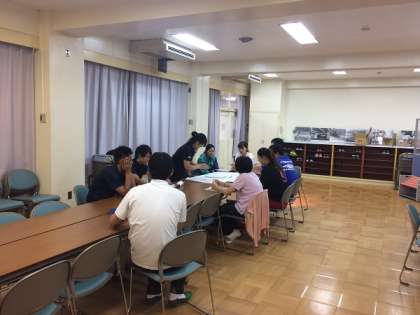 1組は、北村先生による美術の授業、2組は、藤川先生による国語の授業でした。1年生と2年生の授業を5時間目までにし、多くの先生が両クラスの授業を参観し、写真にあるように、放課後に研究協議を行いました。