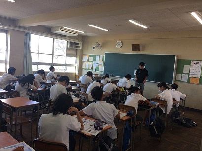 2年生は、各教室で、1学期末に鑑賞したビデオをふまえて、沖縄戦の学習についてのまとめを行いました。