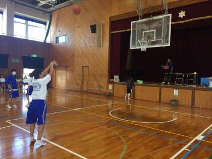 写真は、左から「開会式」「全員ジャンプ(大縄跳び)」「バスケットフリースロー」です。