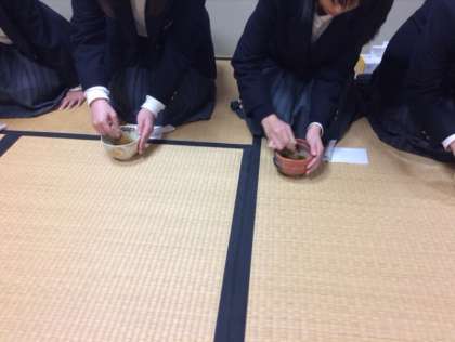 参加した生徒たちは、普段慣れていない、正座に足をしびらせながら、お点前の作法を教えていただき、楽しそうに、そして、美味しそうに、お茶とお菓子をいただいていました。