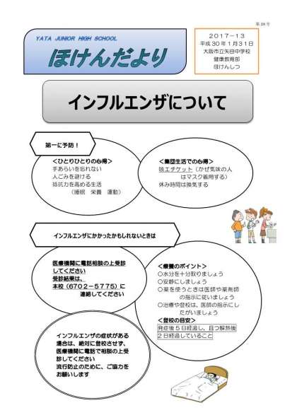 インフルエンザに関する「ほけんだより」を発行しました!!