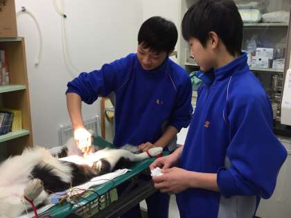 写真は、獣医の「マック動物病院」での様子です。
