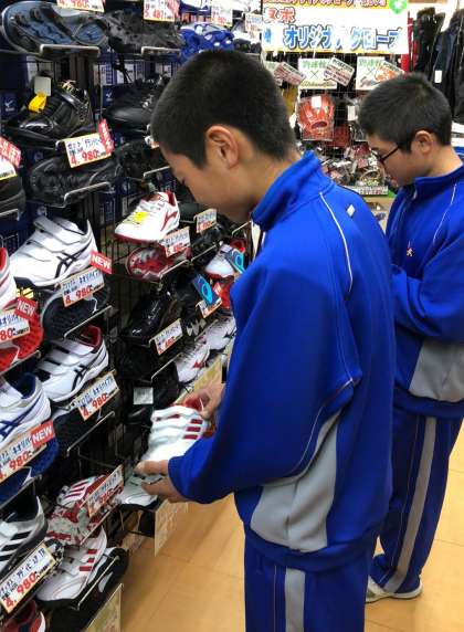 写真は、スポーツ用品店の「太陽スポーツ」での様子です。