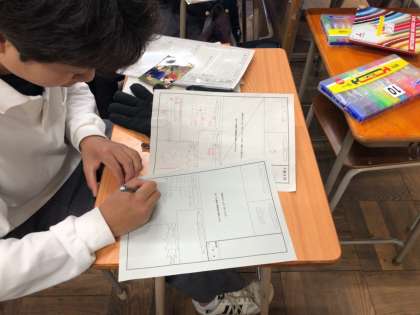 できあがった新聞を、2年生の学習室(ステップ教室)に展示して、鑑賞できるようにすするとのことです。