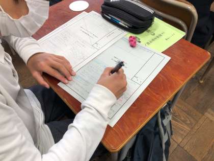 2年生では、2月初めに実施した「職場体験学習」で学んだことなどを、それぞれが一枚の新聞にまとめることに取り組んでいます。