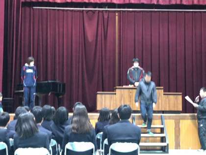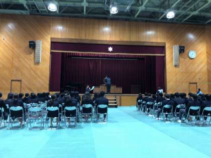 本日の午後から、体育館にて3年生の卒業式練習に取り組んでいます。