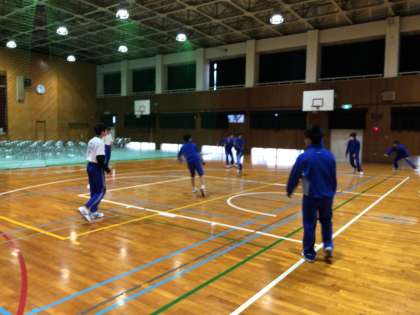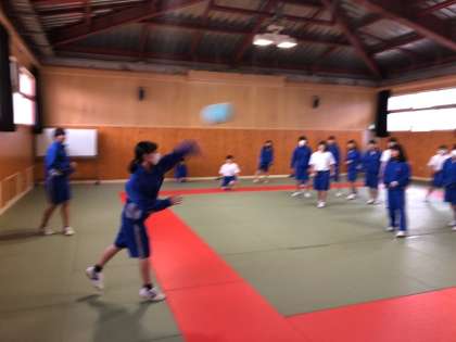 男子は体育館、女子は格技室で、ボールを使った授業となりました。