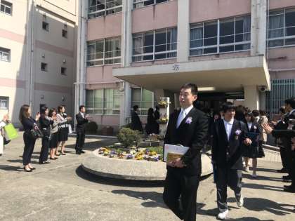 最後に、式終了後、花道を通って、学校を巣立っていく様子です。