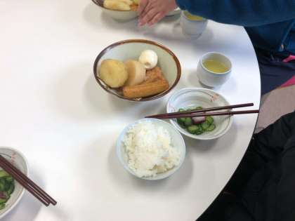 本日のお昼、生活ルーム(特別支援学級)では、「ランチ会」が開かれ、在籍生徒が作った、「おでん」などが、先生方にふるまわれました。