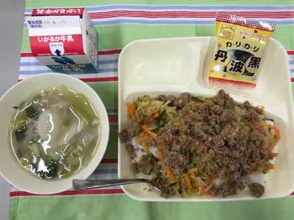 本日の献立は、 ビビンバ、トック、いり黒豆、牛乳 でした。 ごちそうさまでした!!