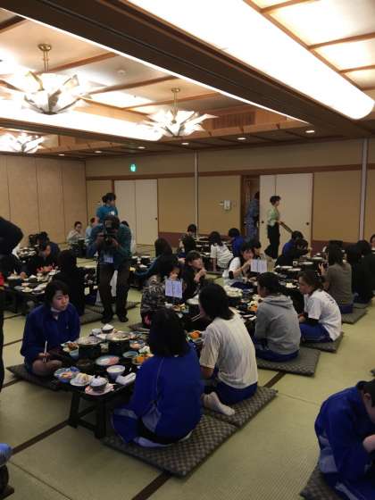 入館式の後、夕食をいただいています。