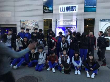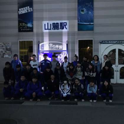 星空を見るナイトツアーへ向かっていますが、ロープウェーに乗る前に、クラスごとに集合写真を撮影しました。
