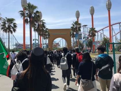 ホテルを出発した、3年生の修学旅行一行は、ほぼ予定どおりに、3日目のメインプログラムである「ナガシマスパーランド」に到着しました!!