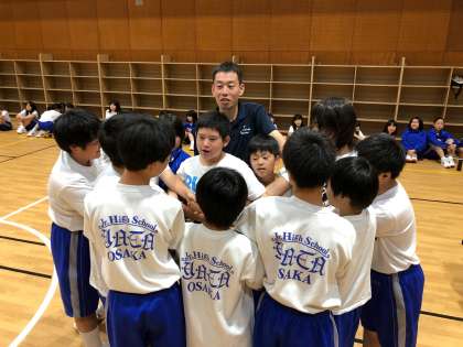クラスごとに絡まるように手を繋いだ状態を知恵の輪を解くように手を離さずにほどいていきます。まず最初に男子です。