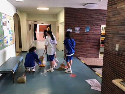 朝食後は、使わせてもらった施設の清掃活動に取り組んでいます。