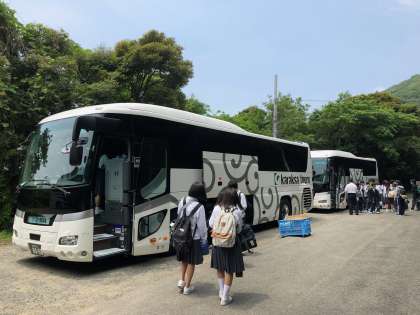 12時30分ごろに、一泊移住一行は矢田中学校に向かって出発しました。